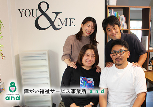 障がい福祉サービス事業所 and(アンド)は、福岡県福岡市南区にある障がい福祉サービスを行っている事業所です。障がいを持っていても、持っていなくても、人は一人では生きていけません。人と人とをつなぐ(and)役割を私たちが行っていきたいと思い“and”と名付けました。